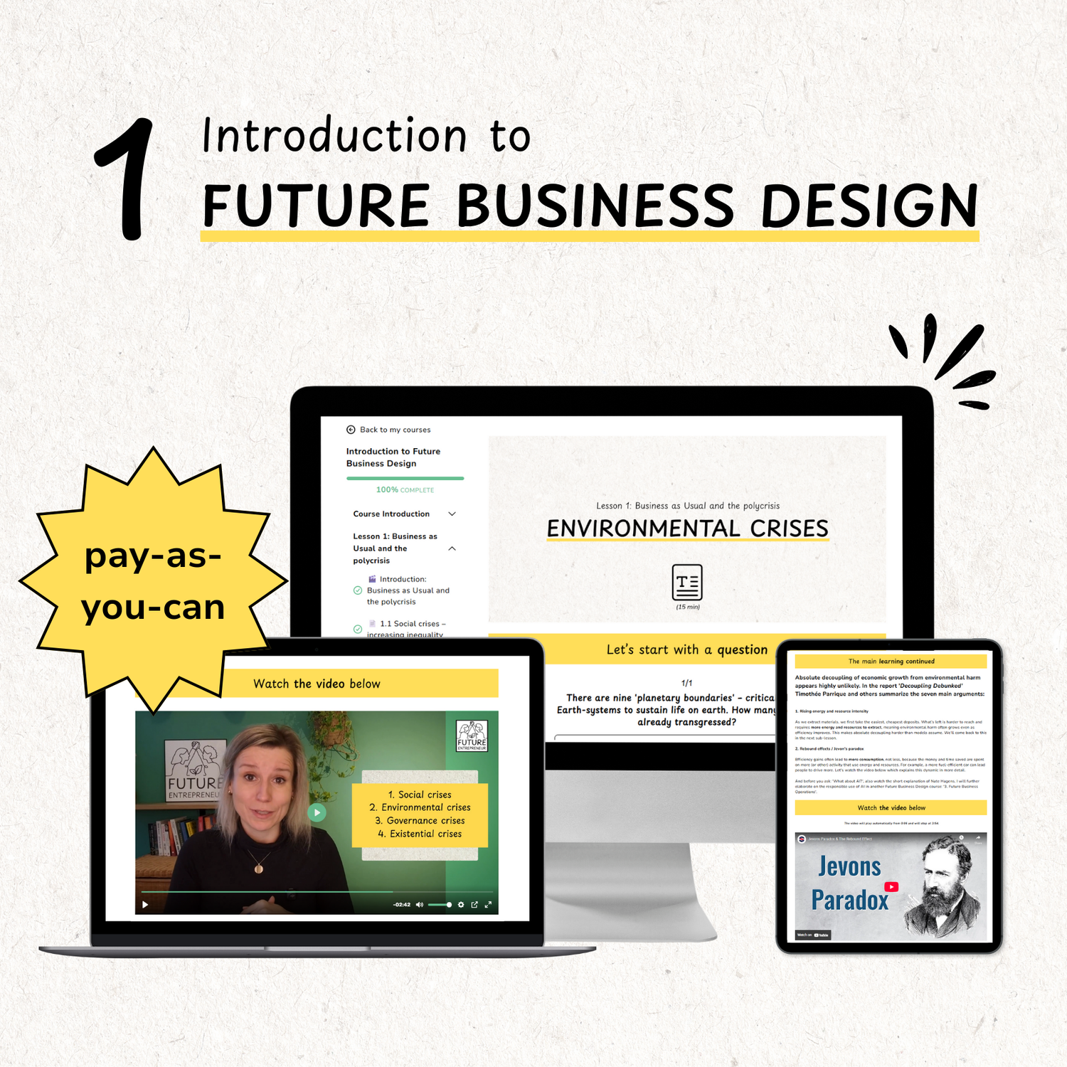 Future Entrepreneur offers five courses on Future Business Design that translate the latest theory into practical action. Through videos, quizzes, cases and assignments these online courses help you to respond to our current meta-crisis while serving a future worth living in.